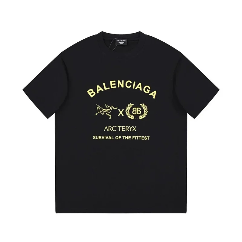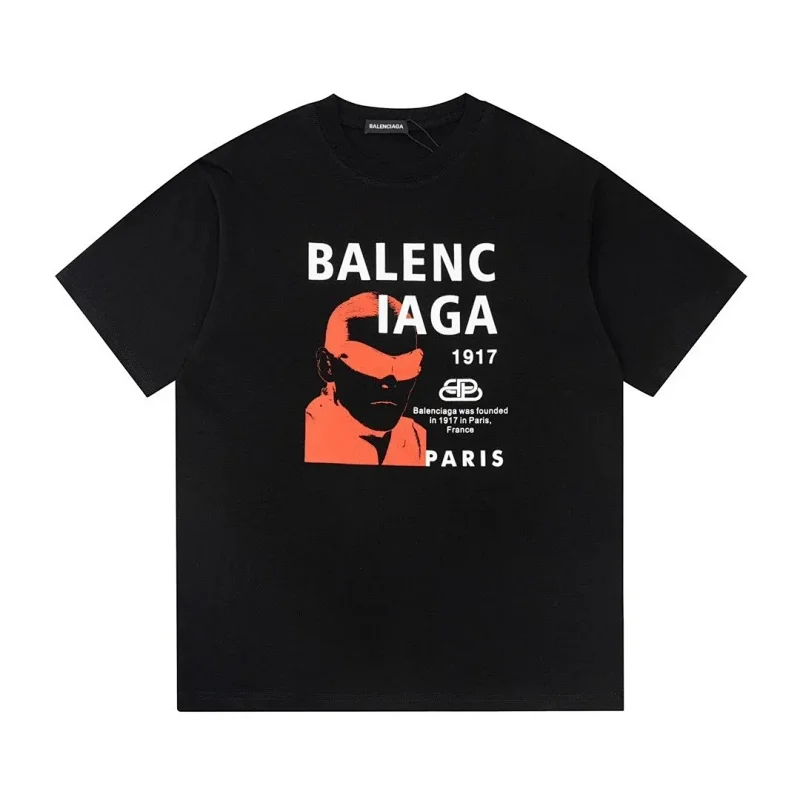 Balenciaga new double-layered fabric printed short-sleeved T-shirt-5177
