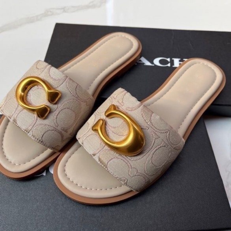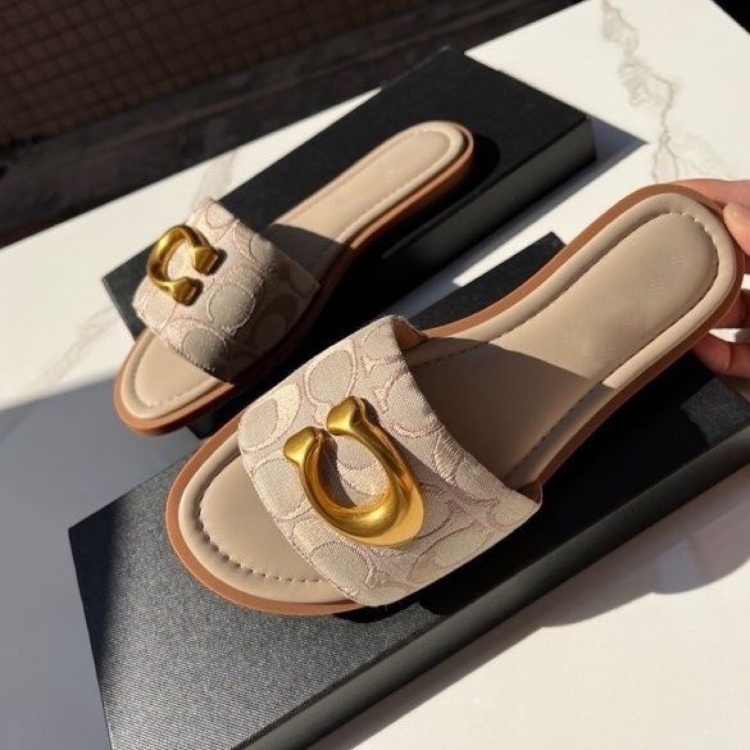 Coach new canvas flat slide sandals-5620