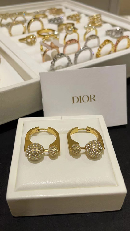 Home > Dior French full diamond small golden ball gold earrings-3711