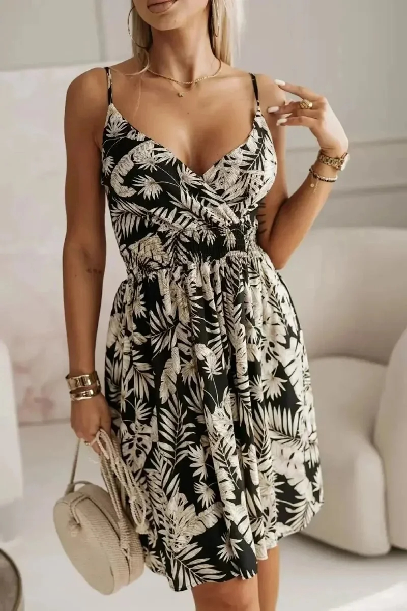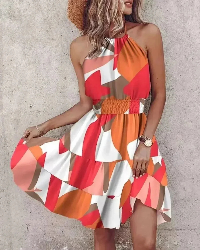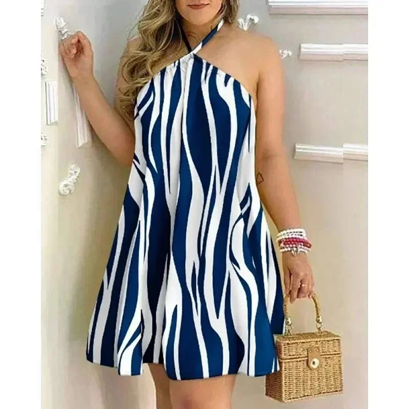 European and American summer off-the-shoulder halter neck loose women's dress-2470