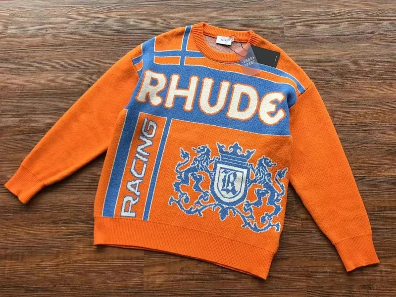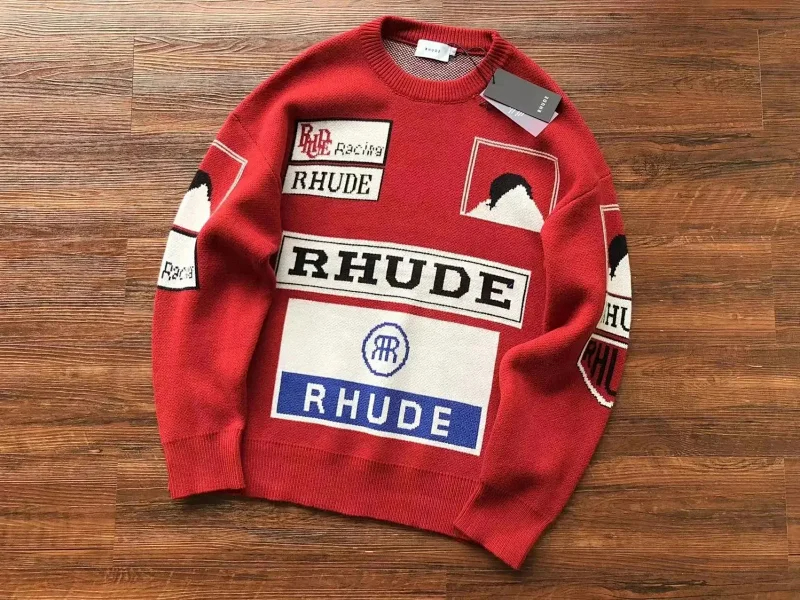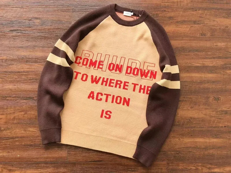 RHUDE New Simple Contrast Color Design Letter Loose Sweater-2141