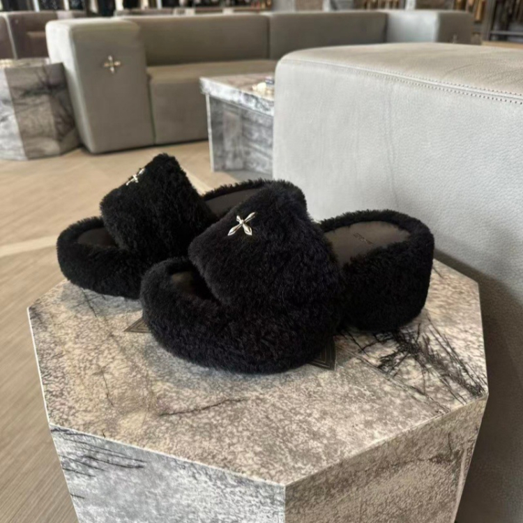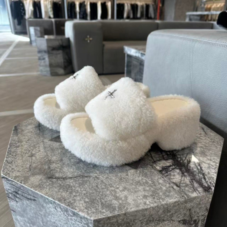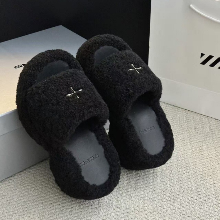SMFK Non-slip Platform Wedge Velvet Slippers-5696