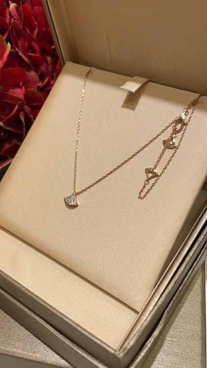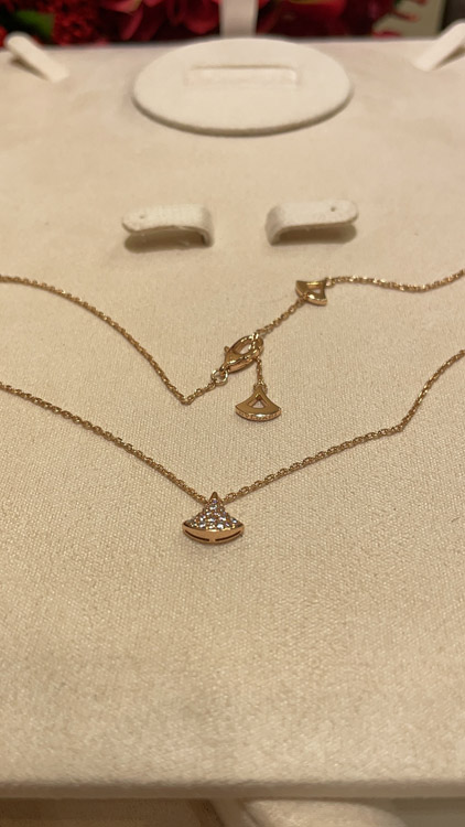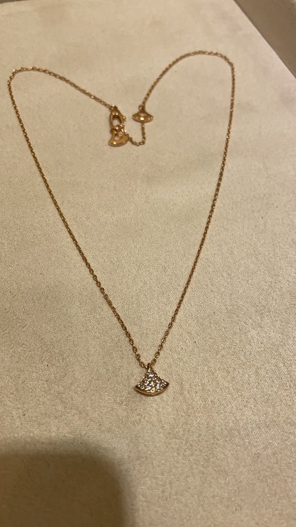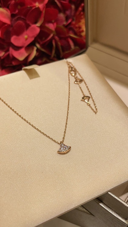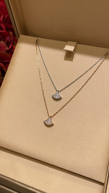 Bulgari small fan white mother-of-pearl rose gold half diamond full diamond necklace-3853