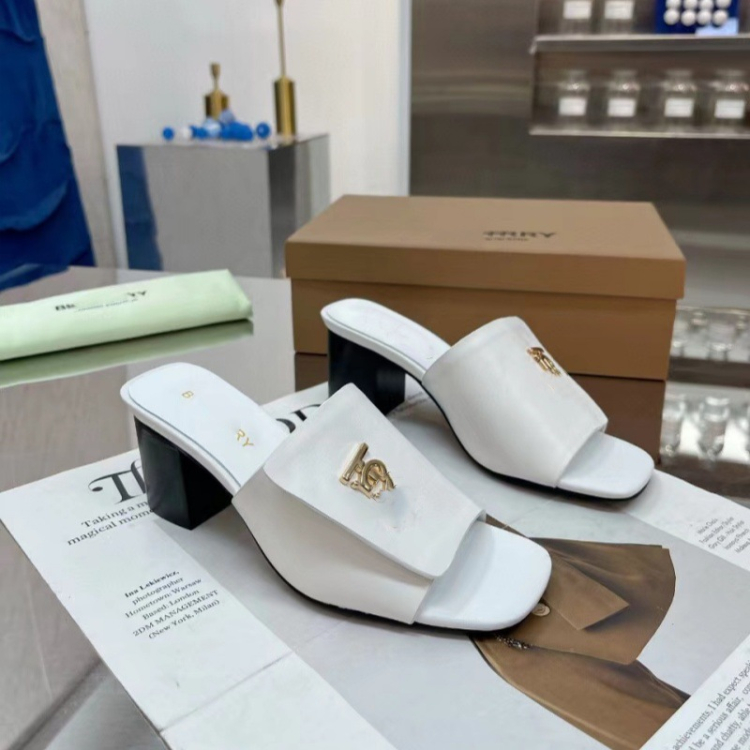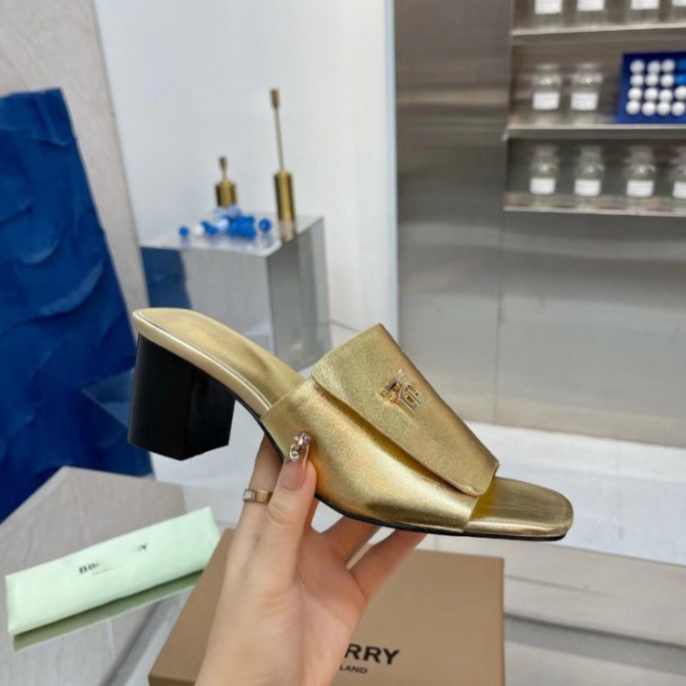 Burberry new metal letter logo high-heeled slide sandals-5757