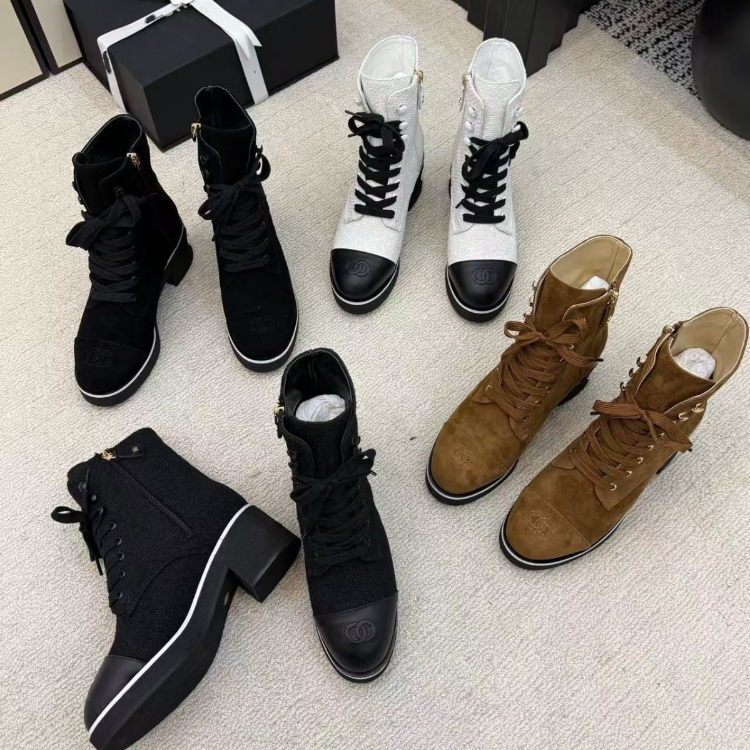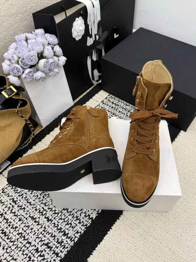 Chanel platform color-block lace-up ankle boots-5774