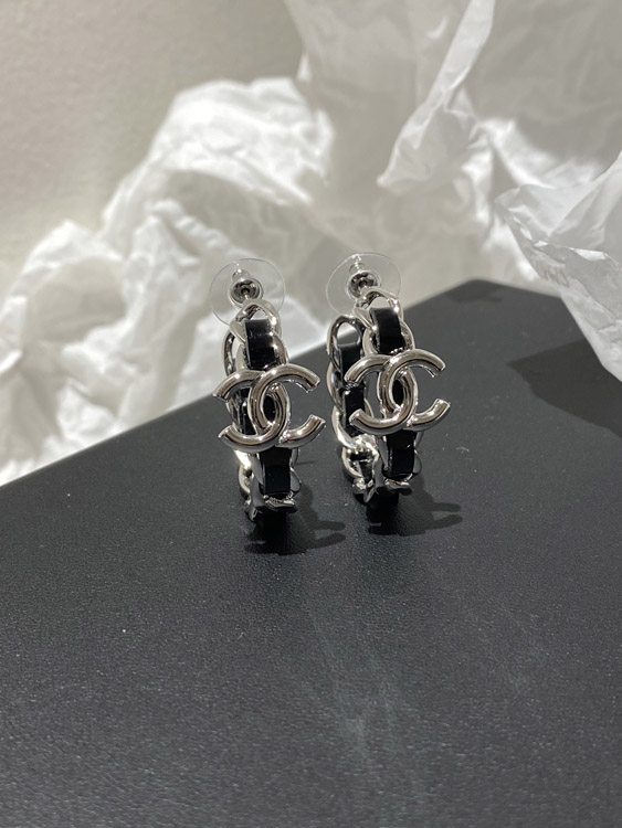 Home > Chanel silver leather hoop earrings-3596