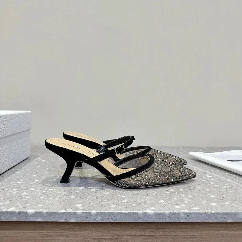 DIOR Capture pointed-toe mesh slingback kitten heels with rhinestone embellishments-5207