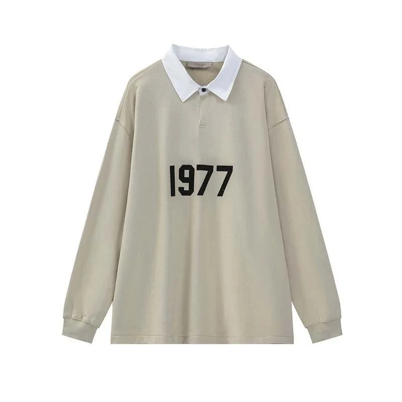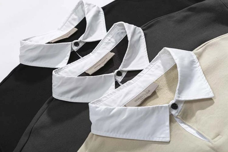 Home > ESSENTIALS Printed Polo Collar Color-Blocked Pullover Terry Sweatshirt-5214
