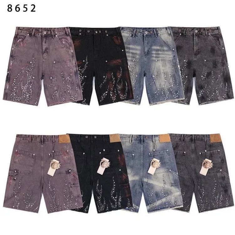 Hell Star Hot Diamond Denim Shorts for Men and Women-1643