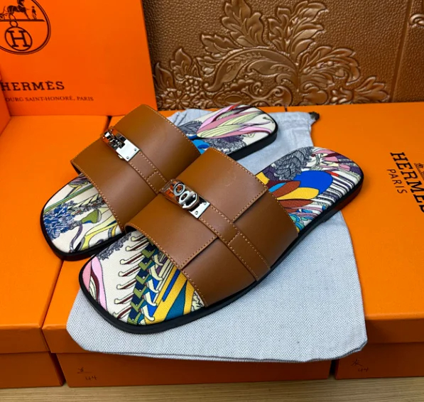 HERMES calfskin round toe slip-on slippers (37 styles)-2966