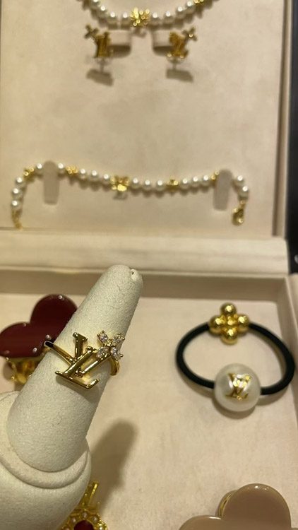 Louis Vuitton LV gold letter diamond small flower ring-3722