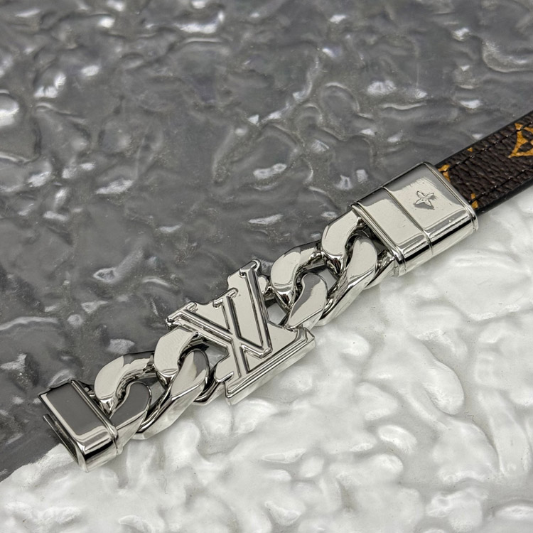 Louis Vuitton LV leather metal chain ring with engraved letters on both sides of the bracelet-3870