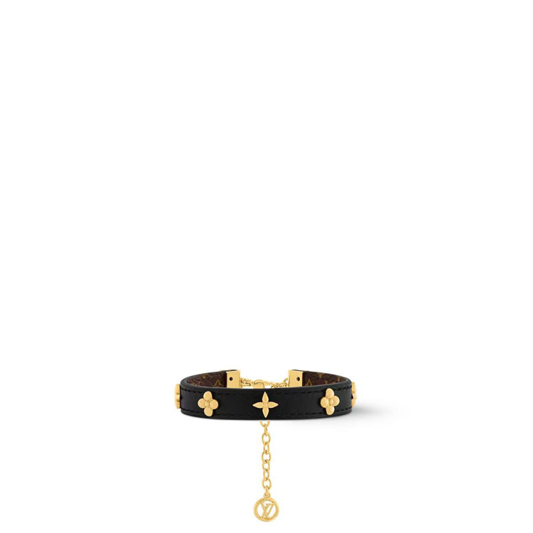 Louis Vuitton LV letter flower black leather gold rivet chain fine leather bracelet bracelet-3660