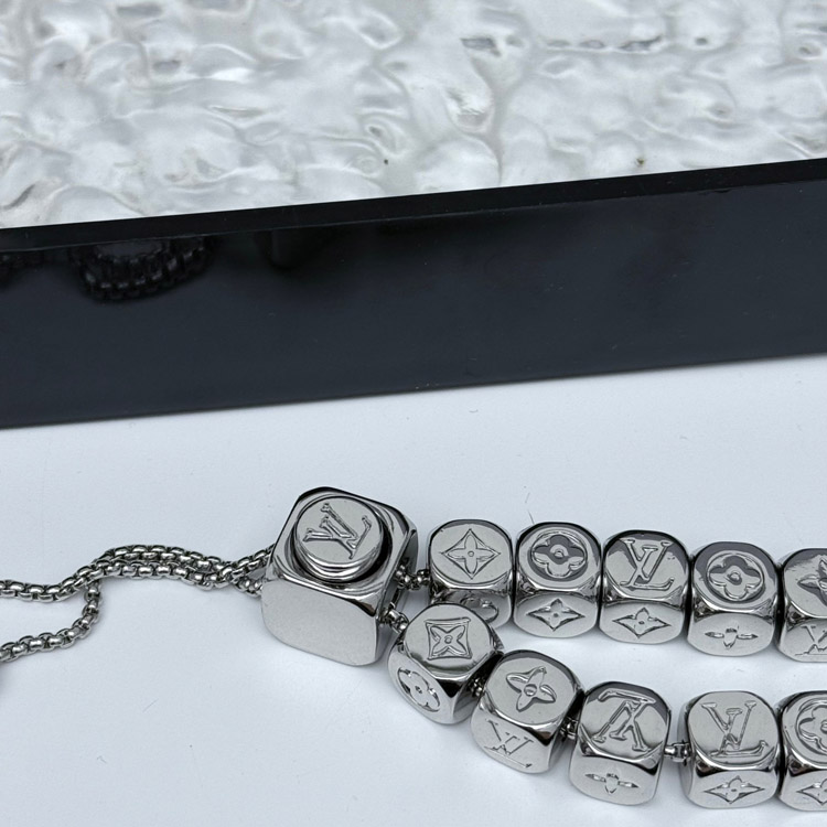 Louis Vuitton LV silver-plated dice chain sliding charm bracelet-3639
