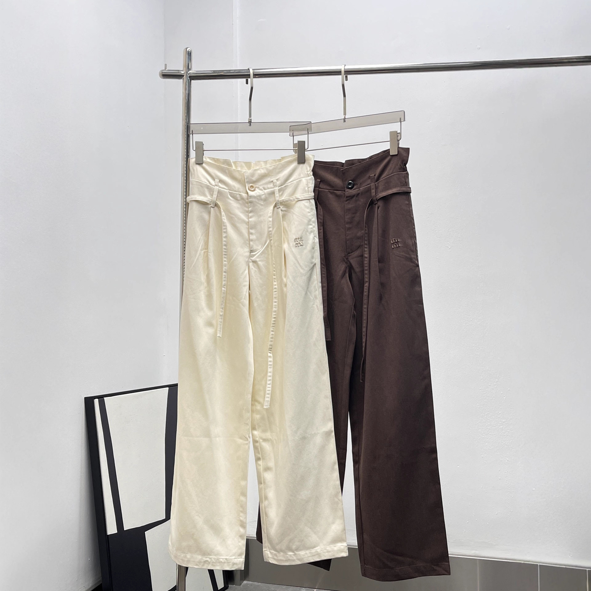 Miu Miu drawstring waist casual trousers with a relaxed, flowing fit-5302