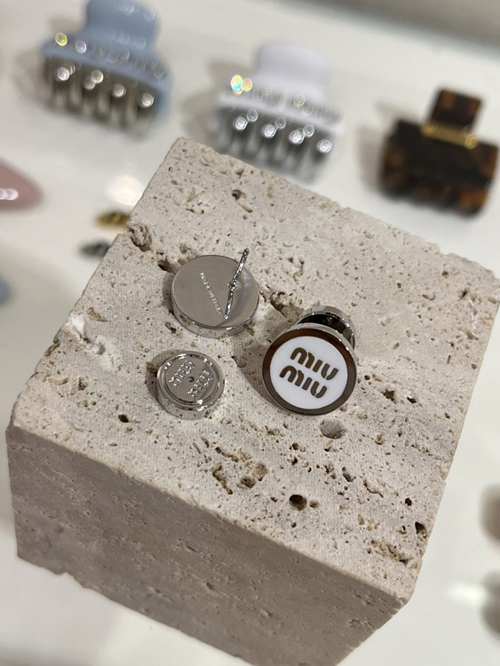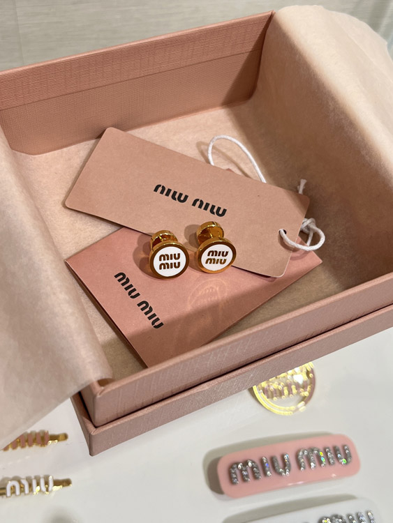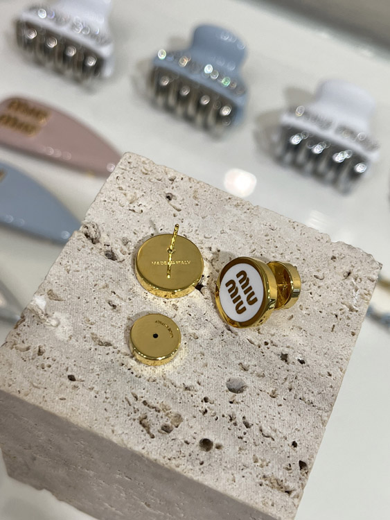 Home > MIUMIU white enamel letter metal round button earrings-3892