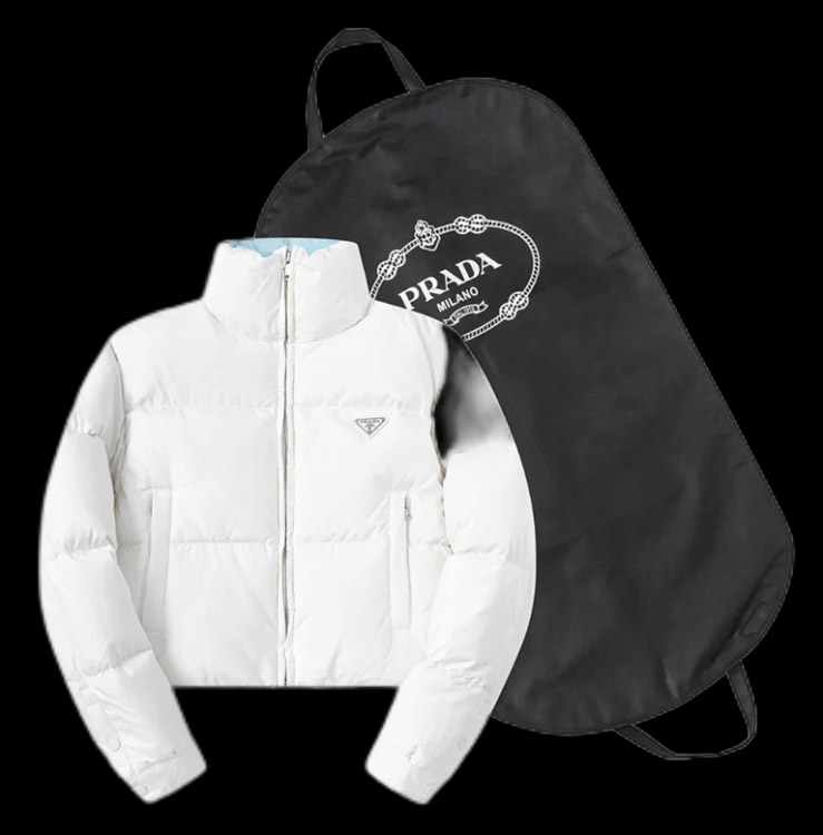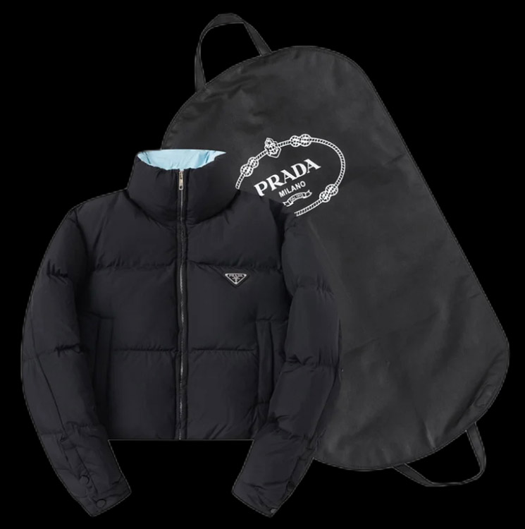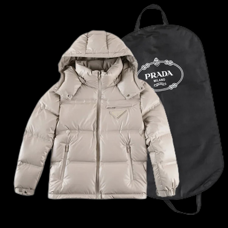 Home > PRADA Prada Logo Badge Lapel Zipper Long Sleeve Down Jacket-4285