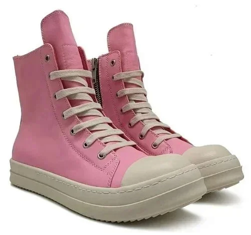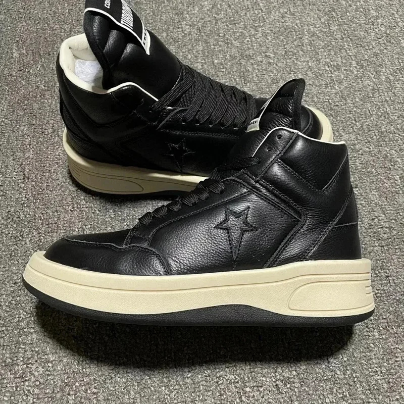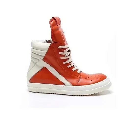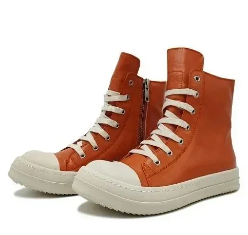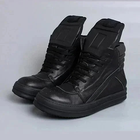 RICK OWENS/RO Edfu leather semi-gloss finish high-top fashion sneakers-2945