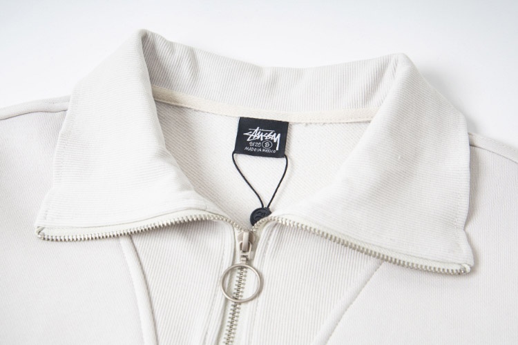 Stussy embroidered zip-up loose-fitting long-sleeved collared sweatshirt-5272