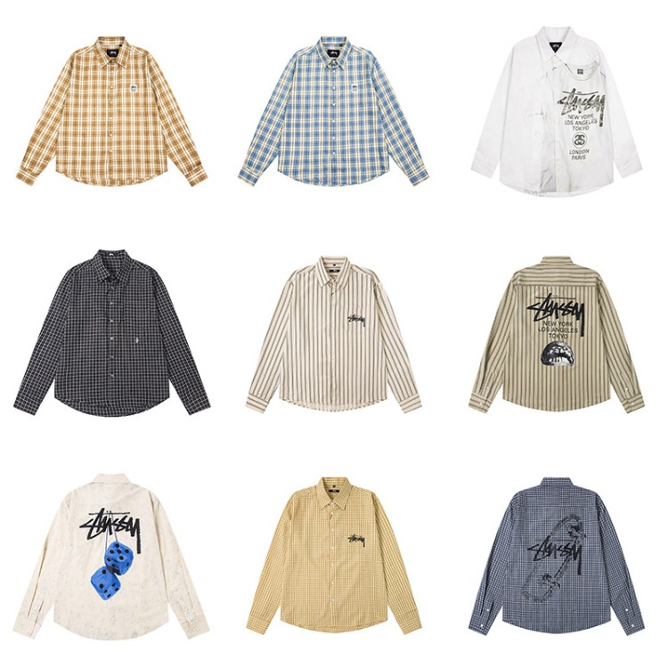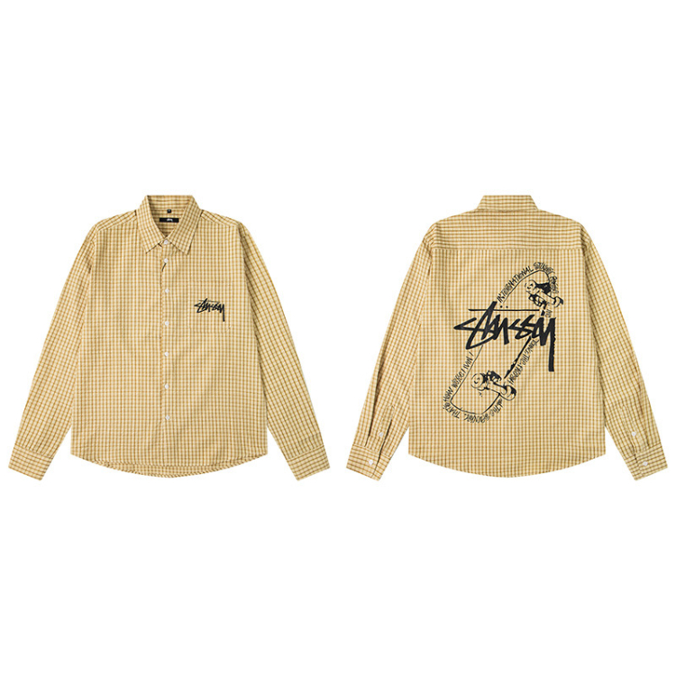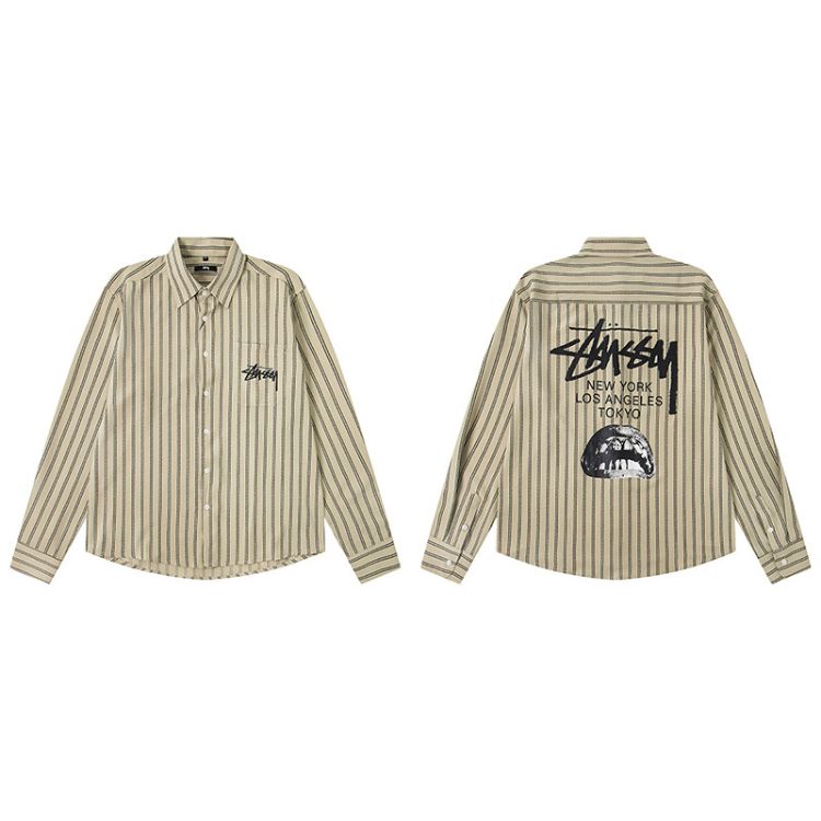 Stussy new loose-fitting casual Japanese-style long-sleeved printed shirt-5275