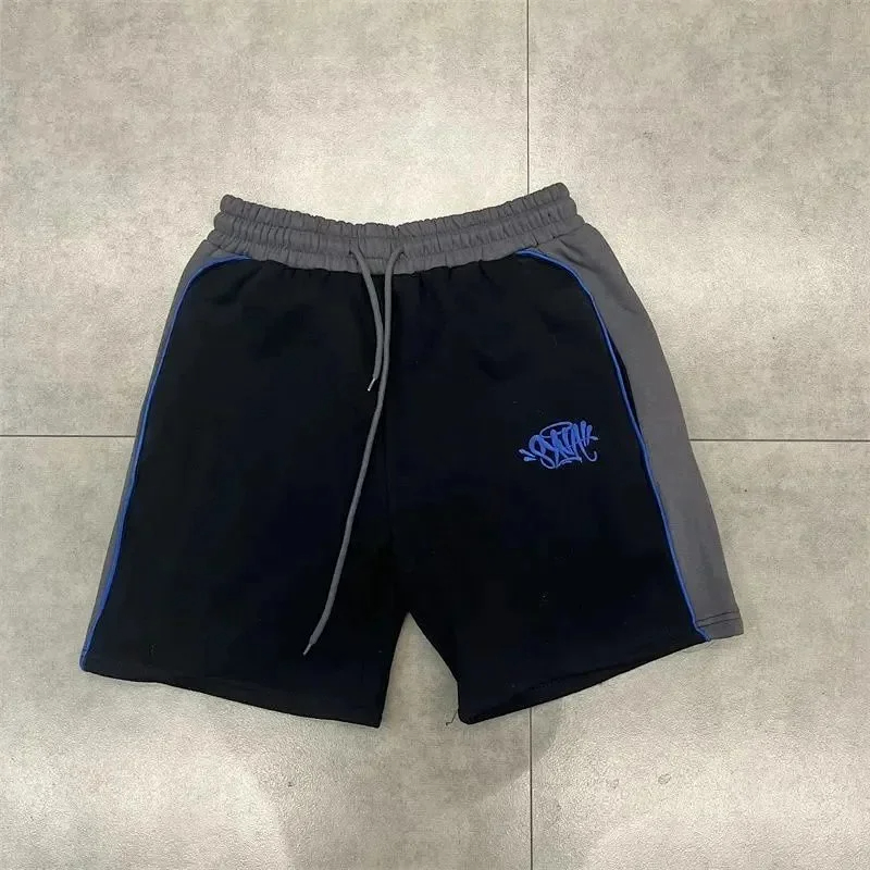 SynaWorld embroidered letter patchwork short-sleeved T-shirt shorts set-2789