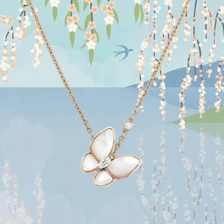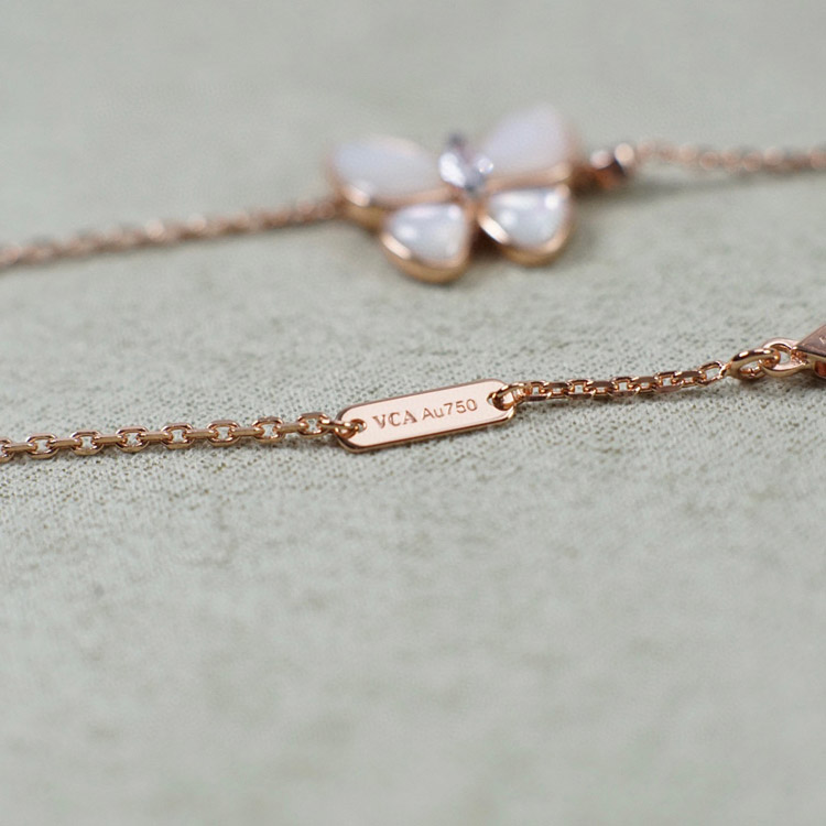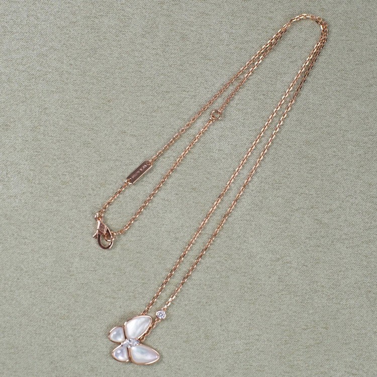 Van Cleef & Arpels Gold and White Mother-of-Pearl Butterfly Necklace-3694